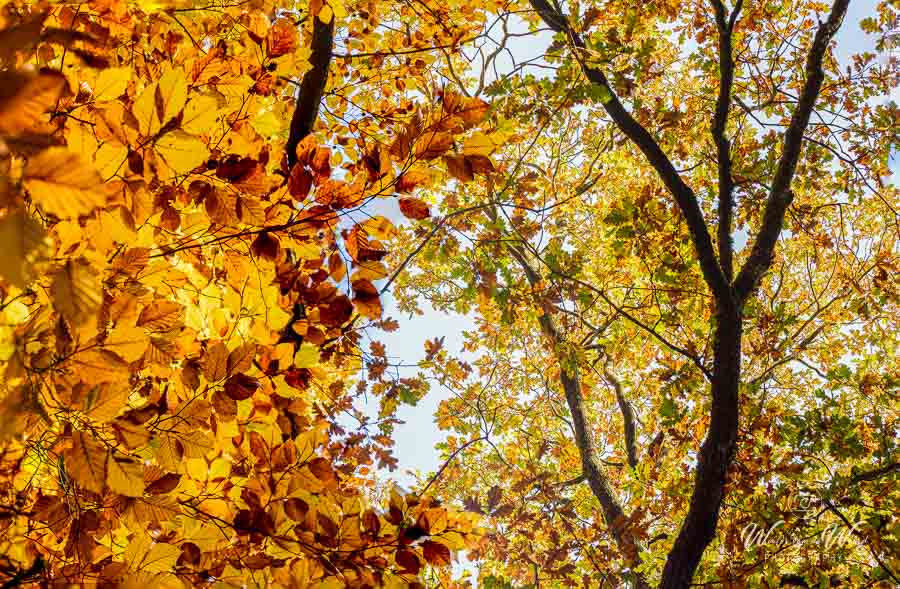 Maar tot mijn grote verrassing zag ik bij het landen op 30 oktober bij Eindhoven dat de bomen nog steeds vol in het blad zaten (ondanks de stormen hier in Nederland tijdens het begin van onze vakantie). En dat ook de kleuren nog moesten komen. Dus ik had goede hoop dat ik nog een keer op pad zou kunnen gaan om van de herfst in het bos te gaan genieten.